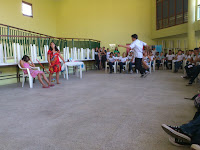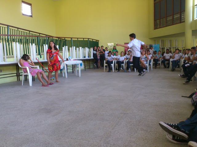 Depois da apresentação dos alunos de Eventos foi cantado de uma forma bem animada o canto Aquarela Brasileira (versão Monobloco). Dando sequência a tarde, tivemos as dramatizações organizado pelo professor Cláudio.
